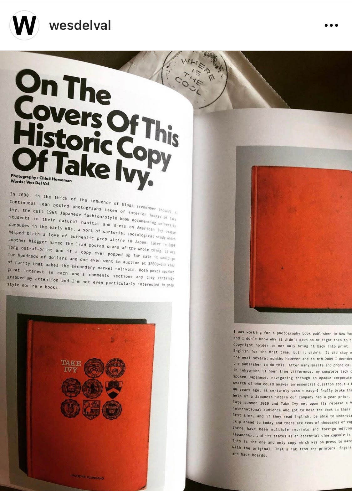 American fashion blogs start to become obsessed with Japanese style and Japanese companies. They discover scans of magazines like Boon, and then they start to uncover the treasure trove of old magazines like Men’s Club… and in 2008, the fashion blog A Continuous Lean published scans of the niche 1956 book Take Ivy. And it blew up. To the point where Powerhouse Books re-issued Take Ivy in English in 2010.