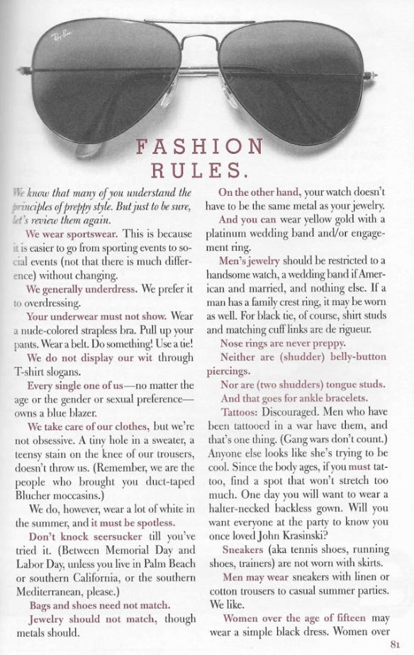 I have loved this podcast so much! I am always trying to explain to my (Californian) husband the weird significance of the preppy aesthetic and the strange of m influence of my strict prep school dress code. And then your 'Best Dressed' photo reveals...we went to the same High School. I recognized that Quad immediately - no wonder I have been obsessed with this season! My early 00s yearbook had a "Most out of dress code" superlative too - just a guy with an untucked shirt.