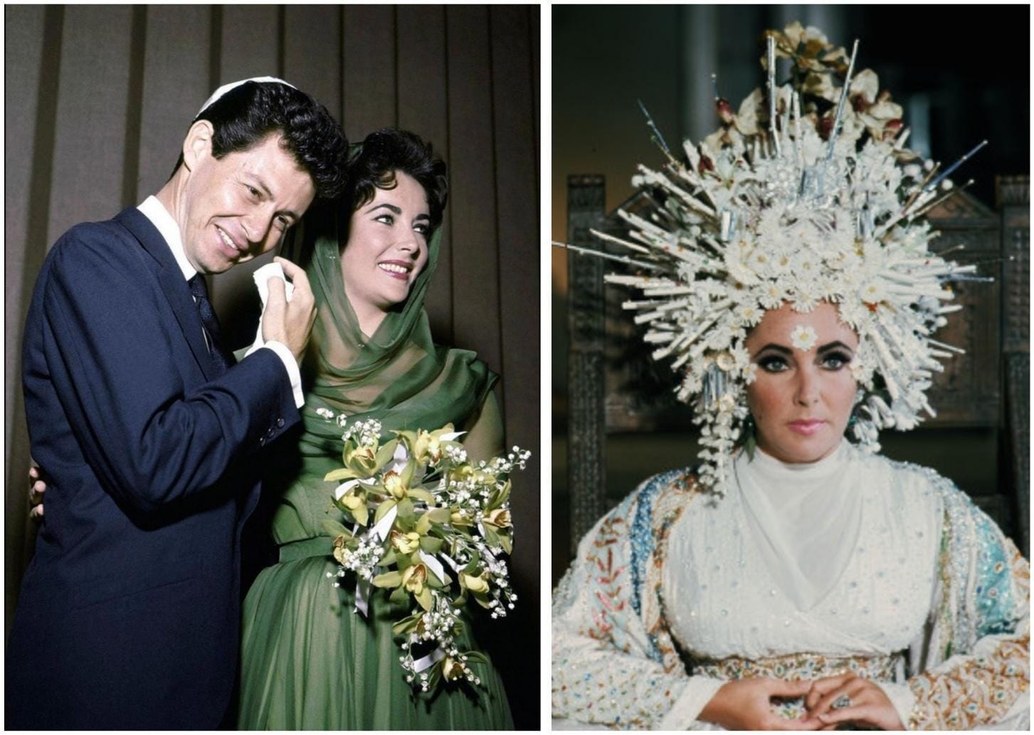 Taylor converted to marry the singer Eddie Fisher, a faith she kept after the union quickly fell apart. Less than a decade later, she starred in a movie called BOOM! which features my favorite clothing item ever of hers: an iconic white tower atop her head designed by Alexandre of Paris. The film stinks, but the hat, as you can see, is divine:
