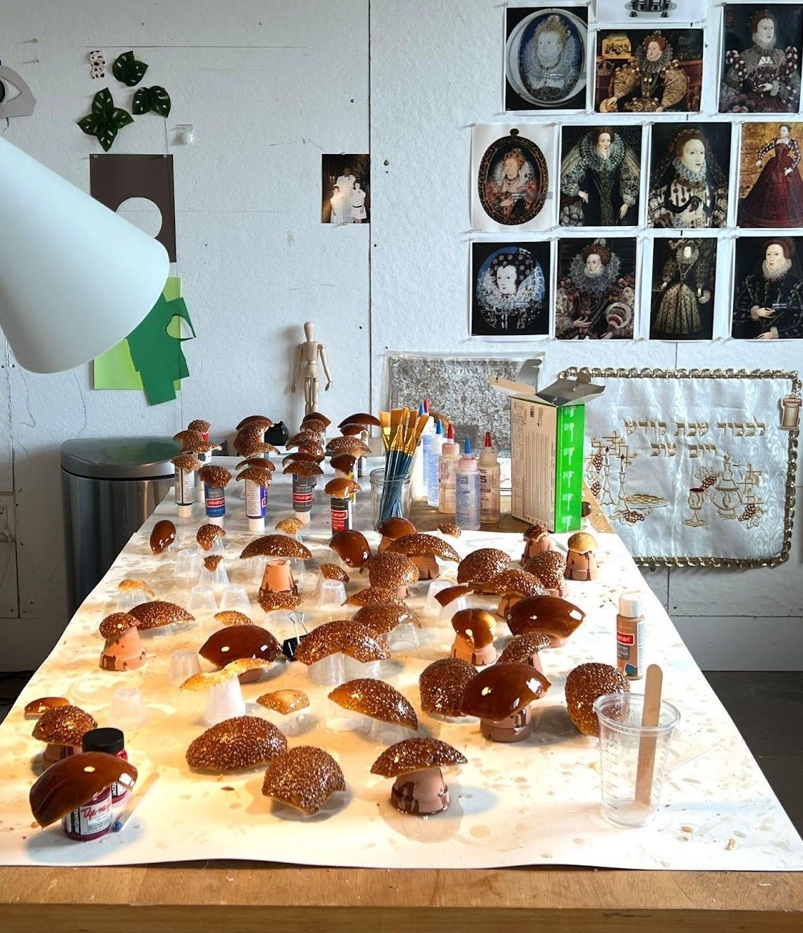 Sabbath Queen references not only Queen Elizabeth I’s looks, but also her politics: specifically her central role in encouraging and funding the beginnings of the British empire, a decision with tragic implications for the displacement of Palestinians centuries later. October 7th and the genocide of Gazans began while I worked on this character, emboldening me to make a bigger, louder political statement.