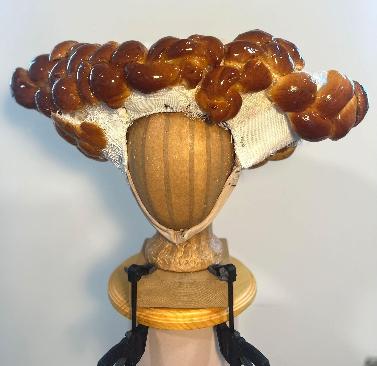 Bread, famously, does not want to be a hat. Somehow, though, after 5-plus months of technical failures, and my home studio stinking of rotting bread and resin, I improbably had a truly wearable challah headpiece for my Sabbath Queen.