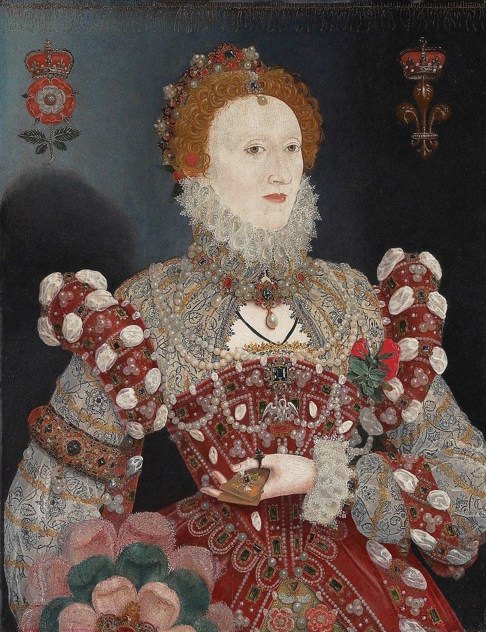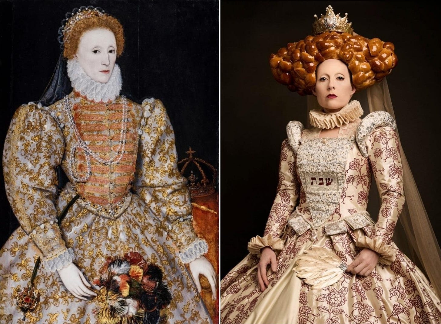 Nothing about Queen Elizabeth I closely tethers her to Jewishness, really, until, that is, you examine her sleeves. I only realized the visual connection between these two queens while looking at this famed portrait, from around 1575: