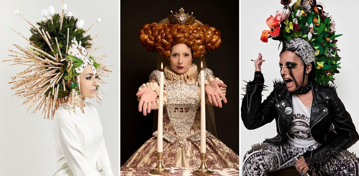 As an artist, I’ve decided to change this. Inspired by Jewish ritual and fashion history, I design costumes and embody characters of my invention with distinct, at times oppositional approaches to contemporary Ashkenazi identity. Collectively, these characters tell the story of Jewish life and disagreement, but through a joyful, feminist, fashion-focused lens.