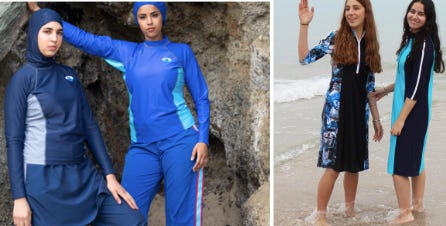 It’s sort of fascinating the various ways that the mandates of different faiths overlap. It’s most obvious with swimwear. Compare Kosher brand Aqua Modesta with Muslim-designed brand Splashgear (featured in the episode)!