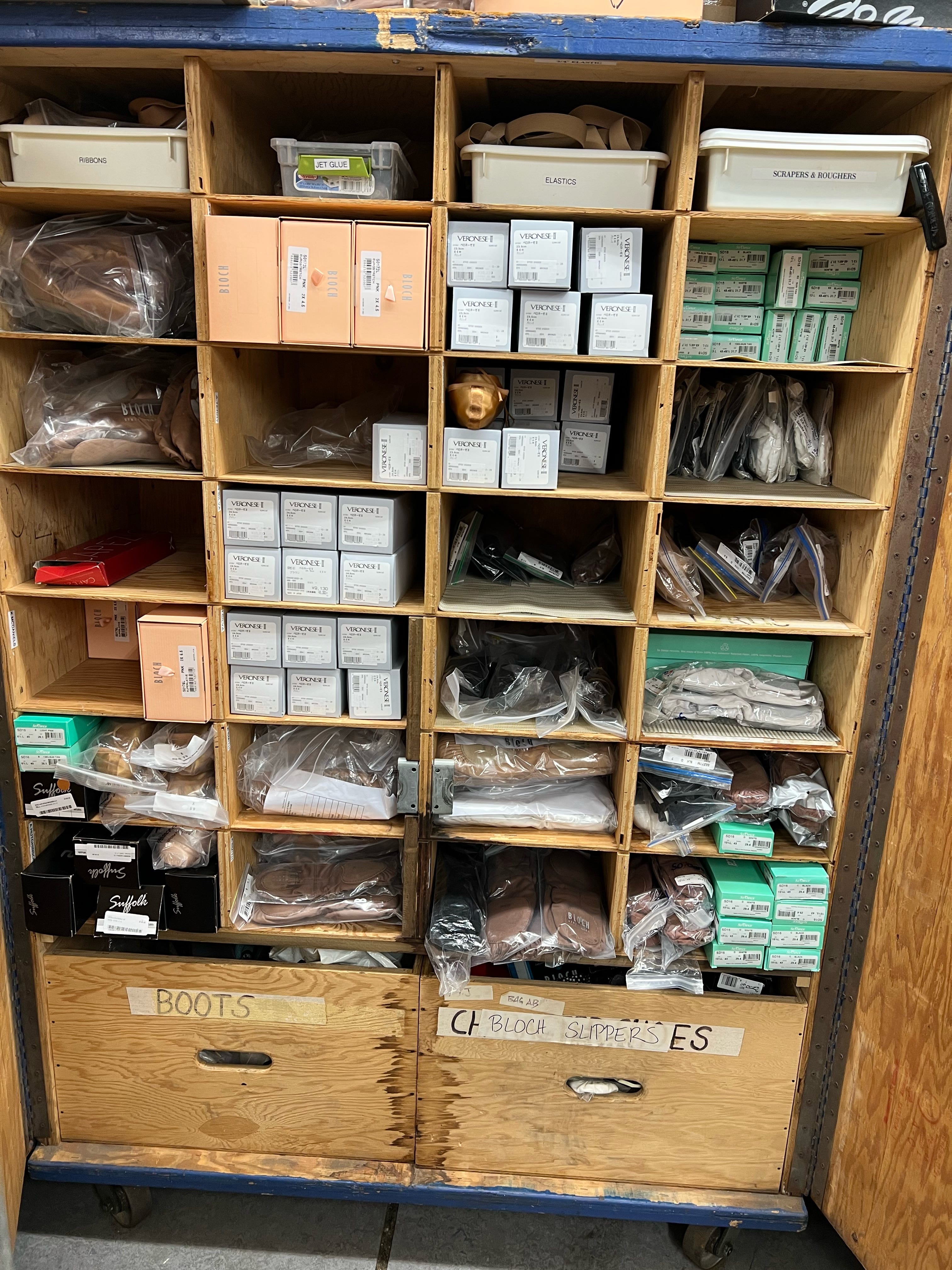 Look at just a section of the storage at Dance Theater of Harlem. Ballet dancers wear out soooo many ballet shoes. At the professional level, pointe shoes are almost single-use. Wardrobe manager Katy Freeman told me that when the company is on tour, they’ll even ship big boxes of shoes in advance, just to meet them in whichever city they’re going to. It’s that intense.