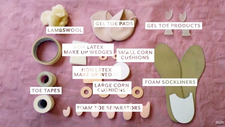 If the ballerina wants to add any padding, oh, to say, maybe, HELP EASE THE PAIN OF PUTTING YOUR ENTIRE WEIGHT ON THE TIPS OF YOUR TOES they have to put it in themselves. These are some of the ways they do it.