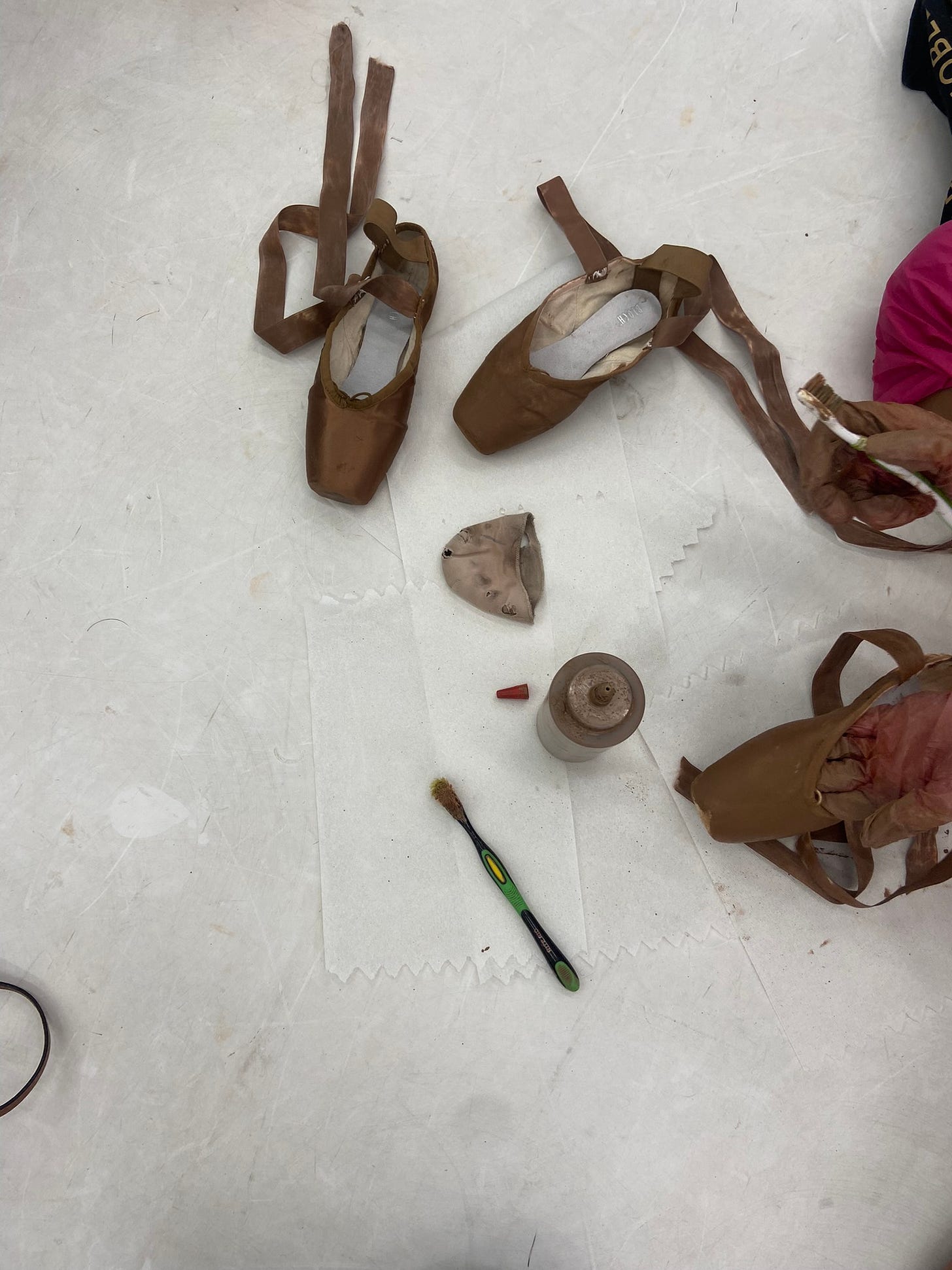 And at Dance Theater of Harlem, a lot of these shoes will be painted. Here is a shoe, on the right, that I watched dancer Amanda Smith hand-paint to match her skin tone. On the left is a shoe that comes readymade by Bloch. Pretty good, right? It’s a solid match! I almost can’t see the difference.